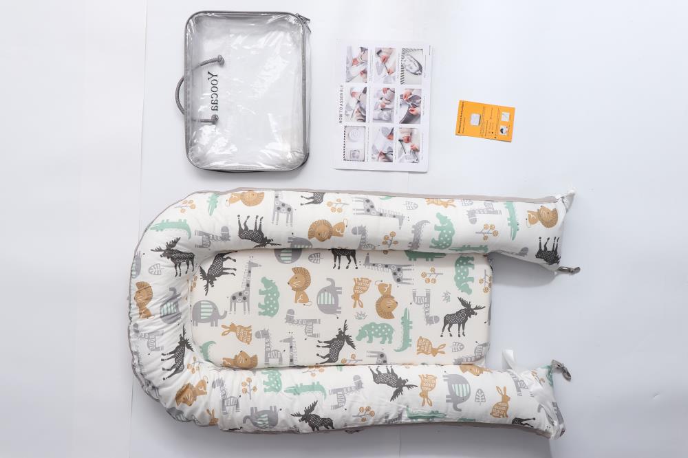 Recalled Product: This recall involves baby loungers made of a cloth cover with a foam sleeping pad and padded bumper. The baby loungers were advertised as “baby lounger” and “baby nest” and were sold in different printed fabrics and colors, including animal, blue star, cloud, feather, flower, forest, leaf, pink star, polar bear and zoo. “SLEEPING SET” is printed on a tag sewn on the interior of the cover.